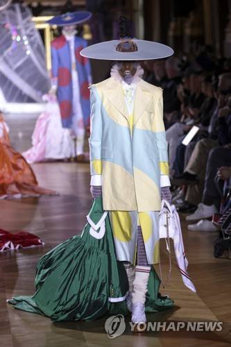A model wears a creation for the Thom Browne ready-to-wear Spring/Summer 2023 fashion collection presented Monday, Oct. 3, 2022 in Paris. (Photo by Vianney Le Caer/Invision/AP) 092722128427, 21334631,