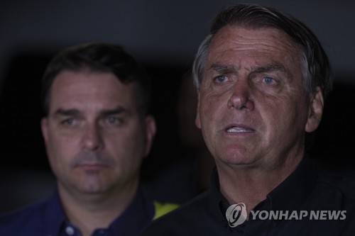 epa10221176 The president and candidate for re-election, Jair Bolsonaro, offers a press conference at the Palacio do Alvorada in Brasilia, Brazil, 02 October 2022 (issued 03 October 2022). The Brazilian president, Jair Bolsonaro, recognized this Sunday 02 October that the elections proved that there is a 'will to change', but assured that in the second round against former president Luiz Inacio Lula da Silva he will show the country that 'it cannot be for the worse'. EPA/Joedson Alves