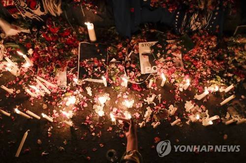 epa10221196 A man lights candles as he pays condolence to the victims of the soccer match riot and stampede outside Kanjuruhan Stadium in Malang, East Java, 03 October 2022. According to Indonesia's Coordinating Minister for Political, Legal and Security Affairs Mahfud MD, the goverment formed an independent investigation team following the soccer riot and stampede that killed 125 people. The police fired tear gas to stop soccer fans from entering the pitch causing panic and stampede, following the match between Arema FC and Persebaya Surabaya in East Java on 01 October. EPA/MAST IRHAM