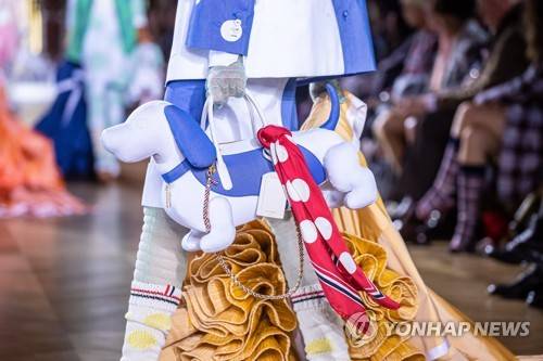 epa10221206 A model presents a creation from the Spring/Summer 2023 Ready to Wear collection by US designer Thom Browne during the Paris Fashion Week, in Paris, France, 03 October 2022. The presentation of the Women's collections runs from 26 September to 04 October. EPA/CHRISTOPHE PETIT TESSON