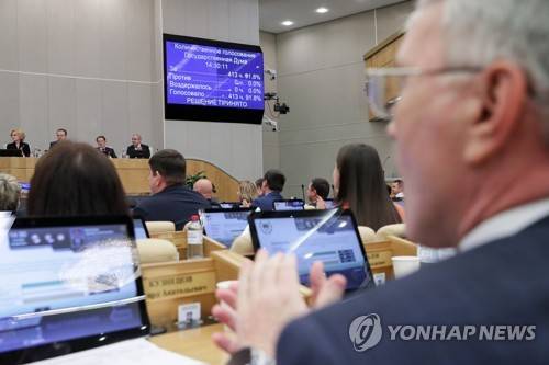 In this handout photo released by The State Duma, The Federal Assembly of The Russian Federation Press Service, deputies attend a session at the State Duma, the Lower House of the Russian Parliament in Moscow, Russia, Monday, Oct. 3, 2022. Russia's lower house of parliament endorses treaties for 4 regions of Ukraine to join Russia. (The State Duma, The Federal Assembly of The Russian Federation Press Service via AP) AP PROVIDES ACCESS TO THIS PUBLICLY DISTRIBUTED HANDOUT PHOTO PROVIDED BY THE STATE DUMA, THE FEDERAL ASSEMBLY OF THE RUSSIAN FEDERATION ; MANDATORY CREDIT.