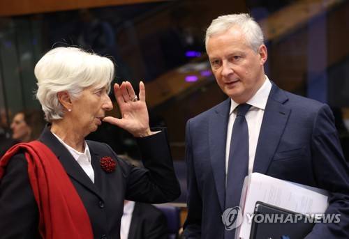 epa10221256 Christine Lagarde, president of the European Central Bank (ECB) (L) and French Minister for Economy, Finance, Industry and Digital Security Bruno Le Maire (R) at the start of an Eurogroup meeting in Luxembourg, 03 October 2022. Ministers will discuss the macroeconomic situation in the euro area. EPA/JULIEN WARNAND