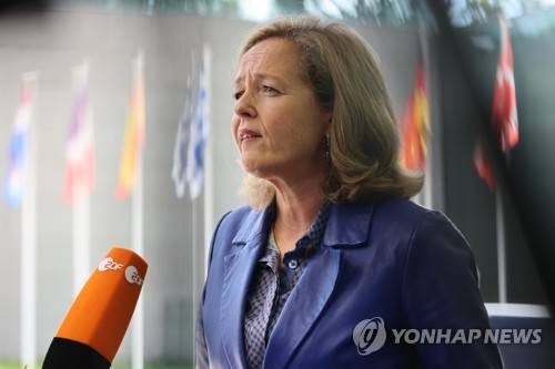 epa10221278 Spanish Economy Minister Nadia Calvino speaks to the press ahead of the Eurogroup meeting in Luxembourg, 03 October 2022. Ministers will discuss the macroeconomic situation in the euro area. EPA/JULIEN WARNAND