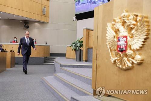epa10221310 A handout picture made available by the Russian State Duma press service shows Russian Foreign Minister Sergey Lavrov during the Russian State Duma plenary session in Moscow, Russia, 03 October 2022. The State Duma, the lower house of the Federal Assembly of Russia, ratified agreements on the admission of four new subjects to the Russian Federation: the Donetsk and Luhansk People's Republics, Kherson and Zaporizhzhia regions of Ukraine. From 23 to 27 September, residents of the self-proclaimed Luhansk and Donetsk People's Republics as well as the Russian-controlled areas of the Kherson and Zaporizhzhia regions of Ukraine voted in a so-called 'referendum' to join the Russian Federation. Putin held a signing ceremony to annex the four areas last week. EPA/RUSSIAN STATE DUMA PRESS SERVICE HANDOUT HANDOUT EDITORIAL USE ONLY/NO SALES