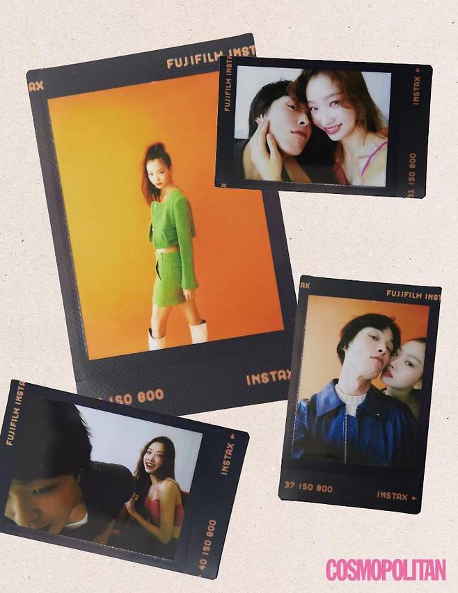 (경진)가죽 점퍼 가격미정 홀리넘버세븐. 이너 톱 33만원대 가니. 데님 팬츠 9만9천원 리바이스. 반지 본인 소장품. (서연)재킷 43만8천원, 미니스커트 43만8천원 모두 렉토. 이너 톱 7만2천원 리. 부츠 스타일리스트 소장품.