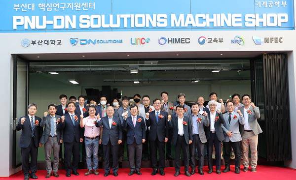 부산대(총장 차정인)는 지난달 30일 디엔솔루션즈(대표 김원종)와 교내 제2부속공장에 'PNU-DN솔루션즈 머신샵' 공간을 마련하고 업무협약 및 장비 기증식(사진)을 개최했다고 3일 밝혔다.
