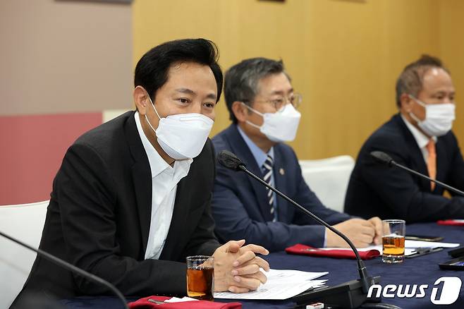 (서울=뉴스1) 조태형 기자 = 오세훈 서울시장이 4일 서울시청에서 열린 서울특별시 보건의료협의체 출범식에 참석해 인사말을 하고 있다.