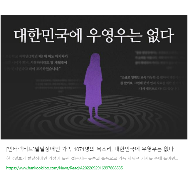 강원 원주의 발달장애아 부모 최예현(가명)씨는 한국일보와의 인터뷰에서 말했다.