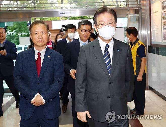 (서울=연합뉴스) 더불어민주당 이재명 대표가 4일 서울 용산구 대한노인회 중앙회를 방문하고 있다. 2022.10.4 [국회사진기자단]