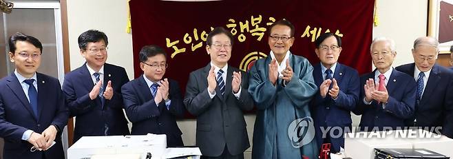대한노인회 방문해 기념촬영하는 이재명 대표
