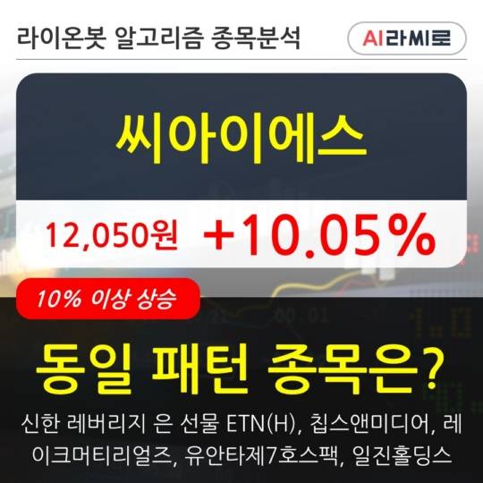 이 시각 거래소에서 씨아이에스 이외에도 신한 레버리지 은 선물 ETN(H)(20.26%), 칩스앤미디어(22.34%), 레이크머티리얼즈(10.3%), 유안타제7호스팩(25.54%), 일진홀딩스(10.57%) 등이 상승세를 보이고 있다.
