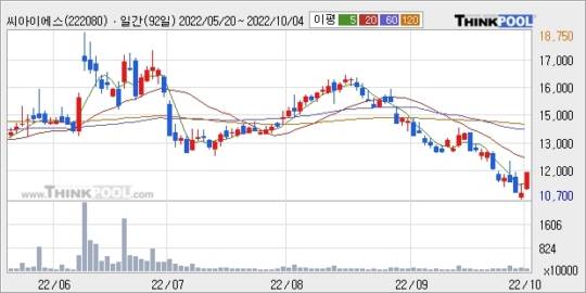 씨아이에스, 장시작 후 꾸준히 올라 +10.05%.. 외국인 50,641주 순매수