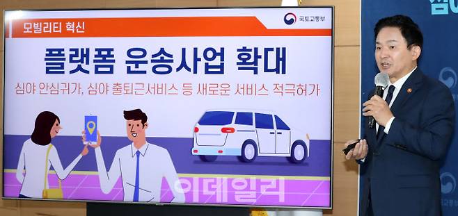 [이데일리 방인권 기자] 원희룡 국토교통부 장관이 4일 서울 종로구 정부서울청사에서 '택시 규제개혁, 모빌리티 혁신을 통한 심야 택시난 완화대책'을 발표하고 있다.