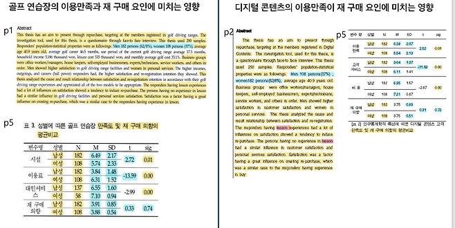 특히 '디지털 논문'에서 "골프장 관련 논문을 베껴오면서 골프연습장 이용고객 400명을 대상으로 한 만족도 설문조사 결과를 디지털콘텐츠 몰 이용고객 400명의 만족도 설문조사 결과인 것처럼 바꿨다"는 게 서 의원의 분석 결과다.
