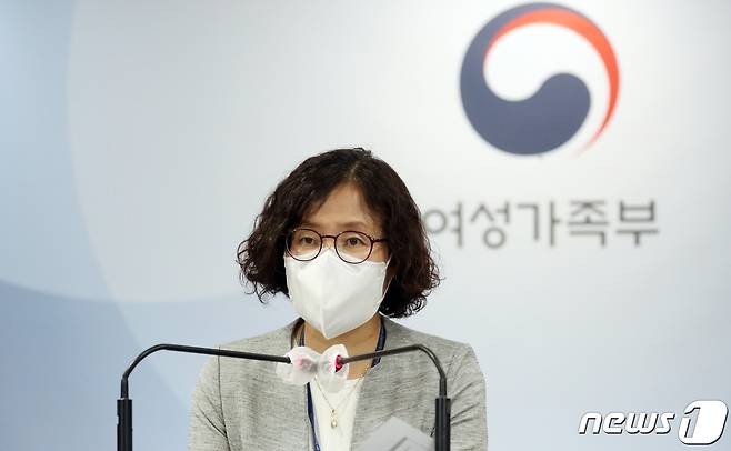 (서울=뉴스1) 김명섭 기자 = 조민경 여성가족부 대변인이 4일 오후 서울 종로구 세종대로 정부서울청사에서 장·차관 일정 등 정례브리핑을 하고 있다. 2022.10.4/뉴스1