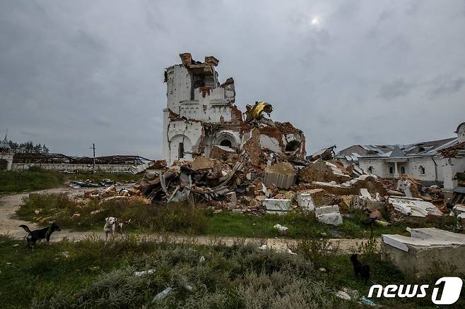 (도네츠크 로이터=뉴스1) 김성식 기자 = 러시아의 우크라이나 공격이 계속되는 가운데 2일(현지시간) 우크라이나 동부 도네츠크의 한 마을에서 교회 건물이 폭격에 완전히 무너져 내린 모습이다.