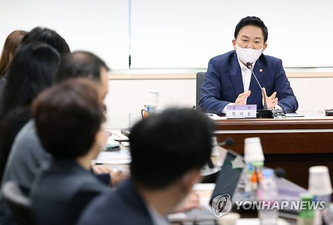 (서울=연합뉴스) 류영석 기자 = 원희룡 국토교통부장관이 4일 오후 서울 여의도 주택도시보증공사 서부주택도시금융센터에서 열린 관리비 투명화 및 사각지대 해소를 위한 간담회에 참석해 인사말을 하고 있다. 2022.10.4
