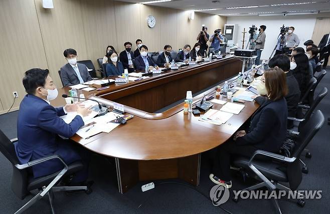 (서울=연합뉴스) 류영석 기자 = 원희룡 국토교통부장관이 4일 오후 서울 여의도 주택도시보증공사 서부주택도시금융센터에서 열린 관리비 투명화 및 사각지대 해소를 위한 간담회에 참석해 인사말을 하고 있다. 2022.10.4