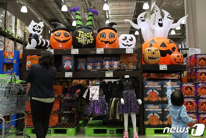 (서울=뉴스1) 송원영 기자 = 핼러윈 데이(10월 31일)를 앞둔 4일 서울 한 대형마트에 핼러윈데이 관련 용품이 진열돼 있다. 2022.10.4/뉴스1