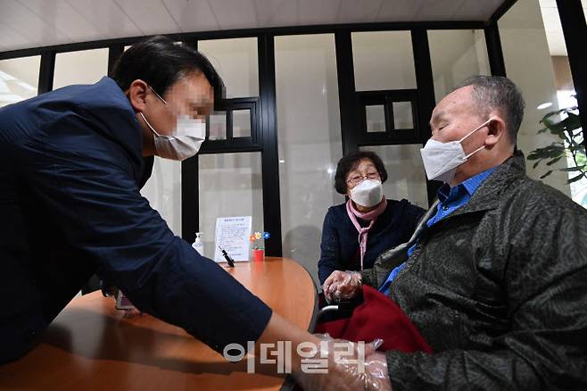 [이데일리 김태형 기자] 감염취약시설의 대면 접촉 면회가 다시 가능해진 4일 서울 시립서부노인전문요양센터에서 입소자와 가족이 면회를 하고 있다. 사진공동취재단.
