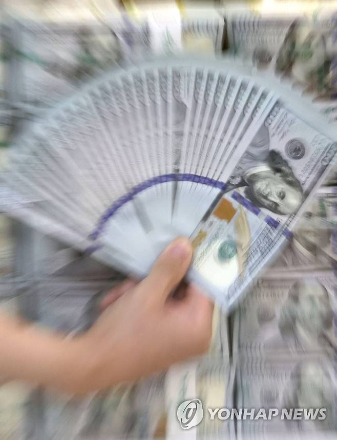 (서울=연합뉴스) 류영석 기자 = 원/달러 환율이 달러당 1,430원선에서 등락 중인 가운데 4일 오전 서울 중구 을지로 하나은행 본점 위변조대응센터에 놓인 달러화의 모습. 2022.10.4