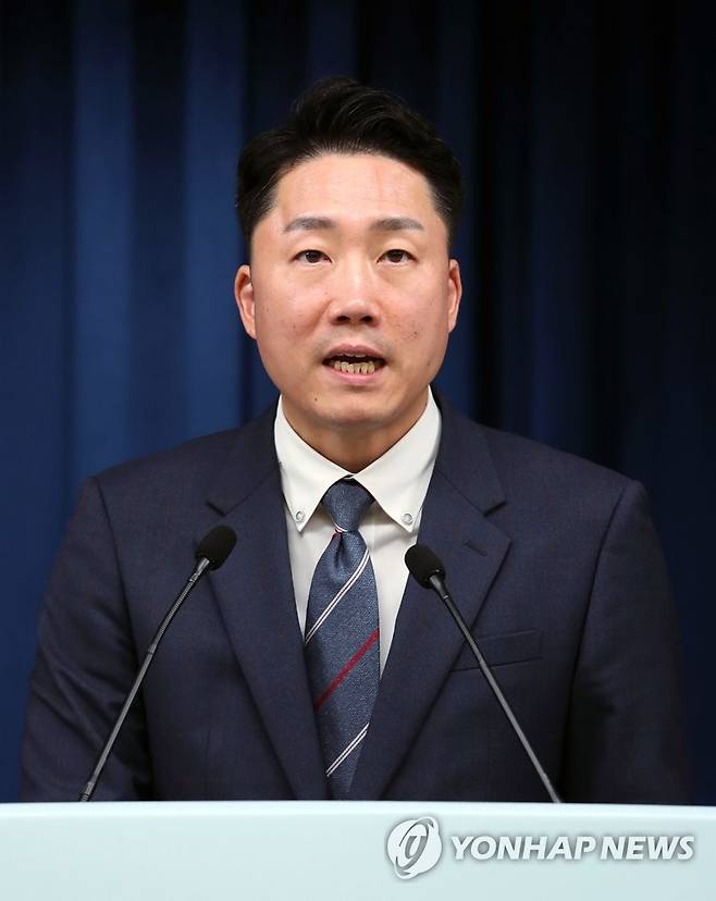 (서울=연합뉴스) 서명곤 기자 = 이재명 대통령실 부대변인이 4일 오후 서울 용산 대통령실 청사 브리핑룸에서 북한의 중거리 탄도미사일(IRBM) 발사와 관련해 한·미, 한·일 안보실장간 전화통화 등에 대해 브리핑하고 있다. 2022.10.4