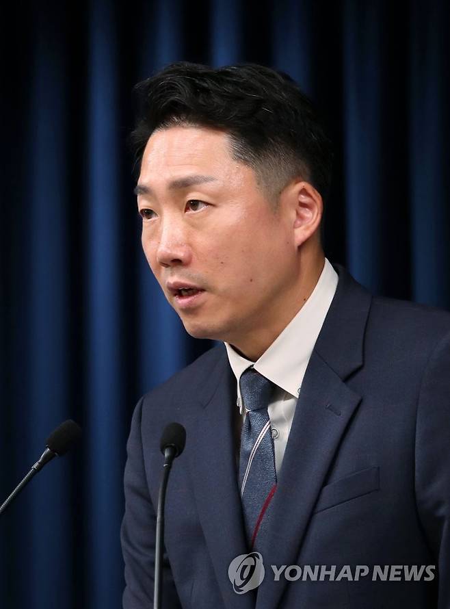 (서울=연합뉴스) 서명곤 기자 = 이재명 대통령실 부대변인이 4일 오후 서울 용산 대통령실 청사 브리핑룸에서 북한의 중거리 탄도미사일(IRBM) 발사와 관련해 한·미, 한·일 안보실장간 전화통화 등에 대해 브리핑하고 있다. 2022.10.4