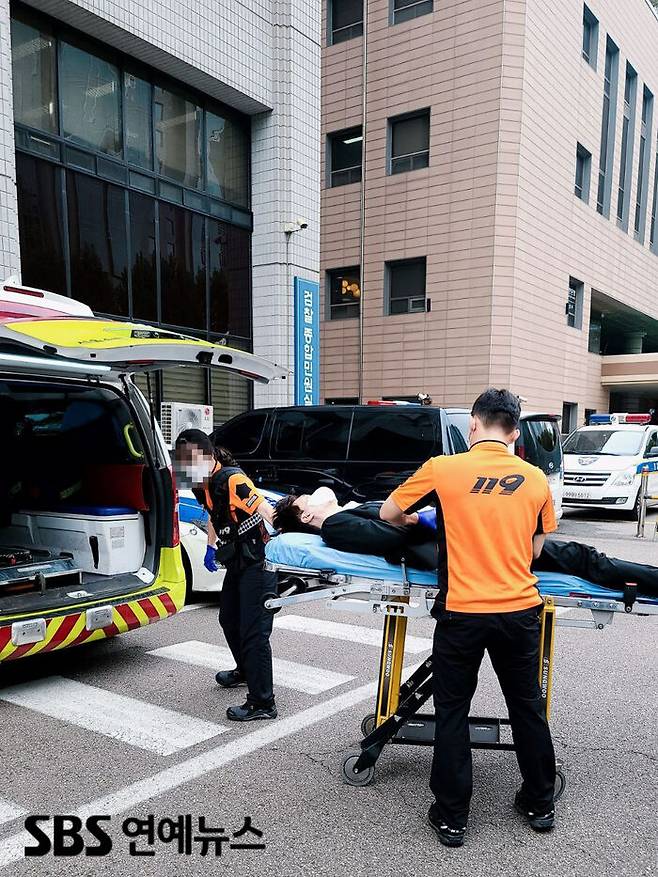 박수홍은 이동식 침대에 누운 채로 구급차를 타고 인근 병원으로 후송됐다.