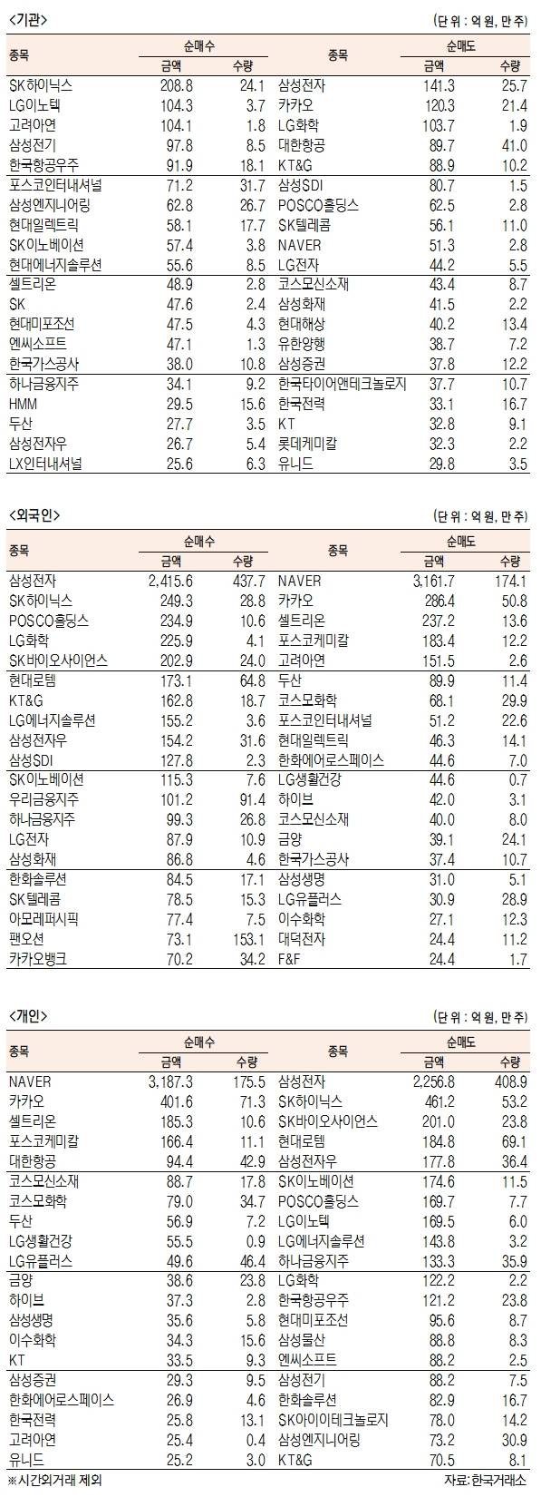 [데이터로 보는 증시]코스피 기관·외국인·개인 순매수·순매도 상위종목(10월 4일)