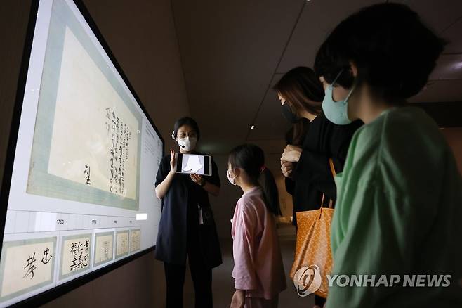 (서울=연합뉴스) 서대연 기자 = 4일 오후 한 가족이 서울 용산구 국립한글박물관에서 해설사의 설명을 듣고 있다.