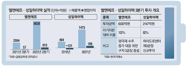 올해 3분기에 자기자본 대비 가장 큰 규모의 투자를 공시한 코스닥 상장사는 엘앤에프다. 엘앤에프는 지난 8월 전기차용 2차전지 양극활물질 수요에 대응하기 위해 6500억원을 들여 구지3공장을 신규 증설한다고 밝혔다. 회사는 해당 투자에 대해 "하이니켈 NCMA(니켈·코발트·망간·알루미늄) 양극재 수주 증가에 대응하기 위한 것"이라며 "신규 투자 공장에서 생산될 주요 제품은 니켈 함유량이 90%대 중·후반에 달하는 차세대 NCMA 양극재로, 주행 거리를 크게 늘린 차세대 전기차 배터리에 채용될 예정"이라고 덧붙였다. 2024년 상반기에 가동될 예정인 구지3공장의 생산 역량은 7만~9만t으로, 구지2공장의 생산 역량과 비슷하거나 이를 뛰어넘는 수준이다.