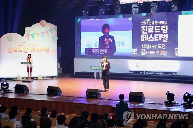 (울산=연합뉴스) 4일 오후 울산시 동구 현대예술관에서 '2022 전국 장애학생 진로드림 페스티벌' 개막식이 열리고 있다. 2022.10.4 [울산시교육청 제공. 재판매 및 DB 금지]