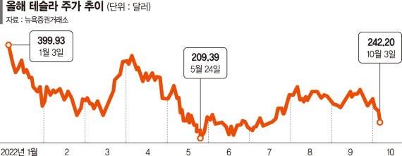 3일(현지시간) 뉴욕 증시에서 테슬라의 주가는 전 거래일 대비 8.6% 급락한 242.40달러에 거래를 마쳤다. 지난 6월 3일 이후 하루 최대 하락 폭이다.