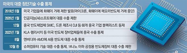 특히 바이든 대통령은 그동안 산발적인 수출 통제 조치를 발표했지만 이번에 포괄적이고 가장 강력한 제재를 내놓을 것으로 보인다고 뉴욕타임스(NYT)는 3일(현지시간) 보도했다. 미국은 14나노미터(㎚) 이하 최첨단 반도체 공정에 들어가는 장비의 중국 판매를 통제하고 미국산 반도체의 대중 수출도 제한하기로 했다.