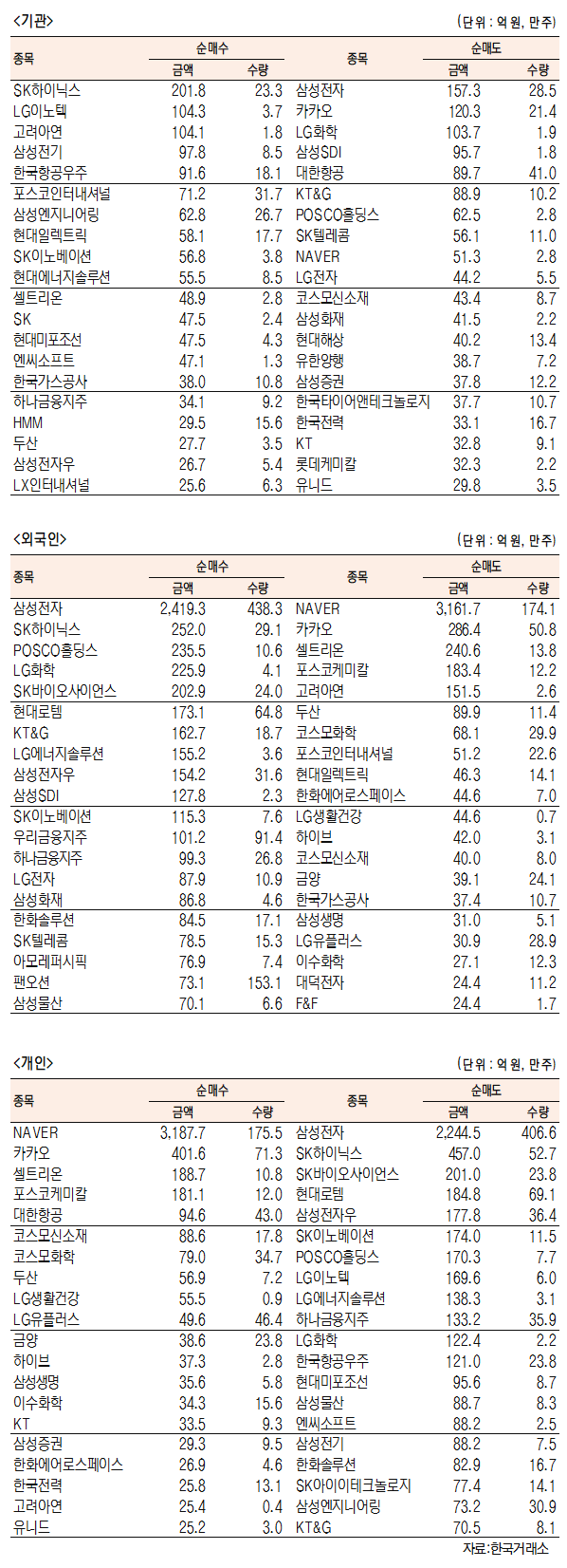 - [표]주간 코스피 기관·외국인·개인 순매수·도 상위종목(9월 26일~30일)