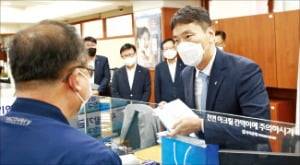 이복현 금융감독원장이 4일 서울 종로구 광장시장 인근에 있는 우리은행 종로4가 금융센터를 찾아 코로나19 대출 만기 연장과 상환 유예 상담을 위해 방문한 고객들과 대화하고 은행 직원들을 격려했다.