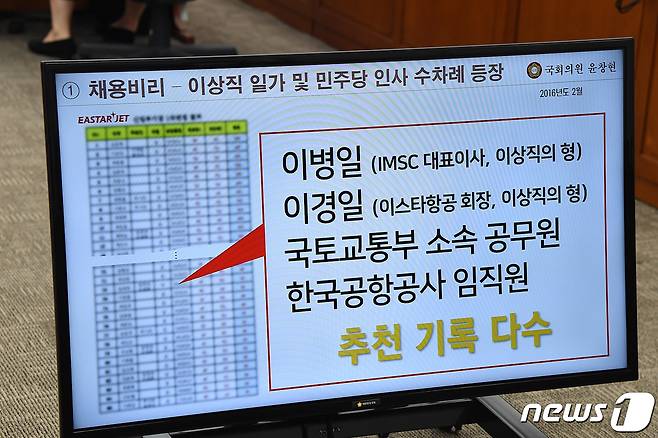 (서울=뉴스1) 유승관 기자 = 윤창현 국민의힘 의원이 4일 서울 여의도 국회에서 열린 정무위원회의 국무조정실, 국무총리비서실 국정감사에서 이스타 항공 관련 질의를 하며 PPT 자료를 공개하고 있다. (공동취재) 2022.10.4/뉴스1