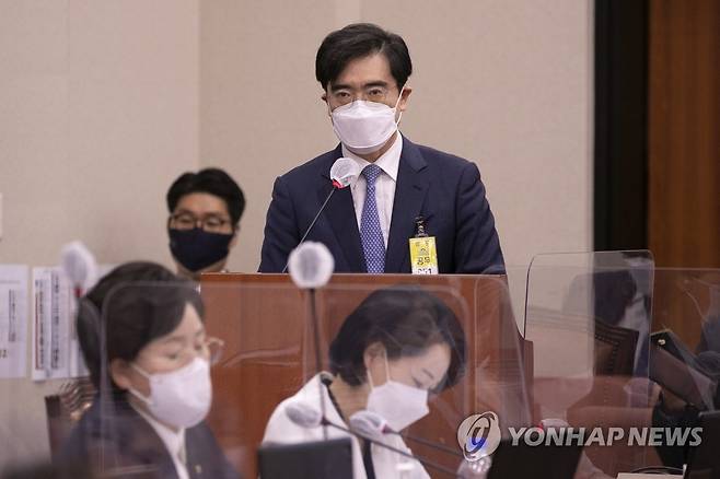 (서울=연합뉴스) 백승렬 기자 = 공영운 현대자동차 사장이 4일 오후 서울 여의도 국회에서 열린 산업통상자원중소벤처기업위원회 국정감사에서 증인으로 출석한 가운데 의원들의 질의에 답을 하고 있다. 2022.10.4 [국회사진기자단]