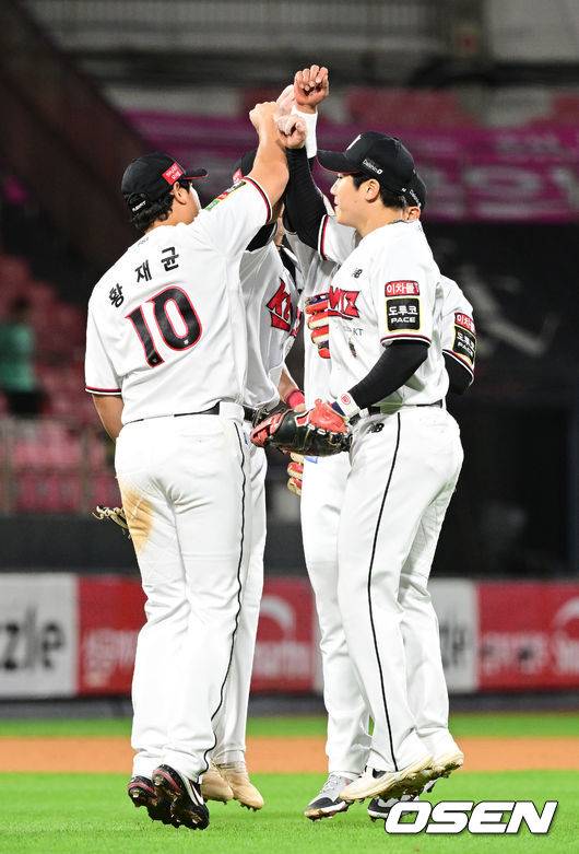 경기를 마치고 KT 내야수들이 승리 세리머니를 펼치고 있다. 2022.10.04 / dreamer@osen.co.kr