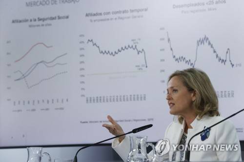 epa10222640 Spain's Economy minister Nadia Calvino addresses a press conference following a Cabinet Meeting held at Moncloa Palace in Madrid, Spain, 04 October 2022. EPA/JUAN CARLOS HIDALGO