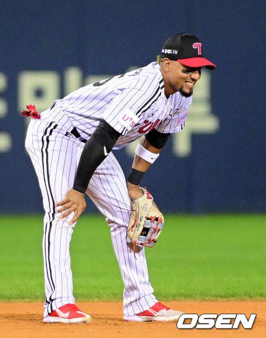 9회초 무사 1루에서 LG 가르시아가 KIA 이창진의 3루땅볼 타구에 실책을 범하며 아쉬워하고 있다. 2022.10.04 /jpnews@osen.co.kr