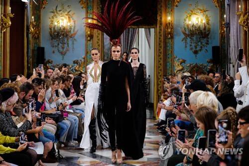 epa10222653 A group of models wear creations by designer Esther Noriega during a show within the 'Atelier Couture' Bridal Fashion Days at the Palacio de Santona in Madrid, central Spain, 04 October 2022. The event until 05 October features bridal and ceremony fashion from various creators, but also 'handmade fashion proposals for men, genderless and masculine tailoring, footwear and jewelry' as 'Atelier Couture' annonced on their website. EPA/LUIS MILLAN