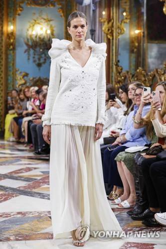 epa10222699 A model wears a creation by designer Juana Rique during a show within the 'Atelier Couture' Bridal Fashion Days at the Palacio de Santona in Madrid, central Spain, 04 October 2022. The event until 05 October features bridal and ceremony fashion from various creators, but also 'handmade fashion proposals for men, genderless and masculine tailoring, footwear and jewelry' as 'Atelier Couture' annonced on their website. EPA/LUIS MILLAN