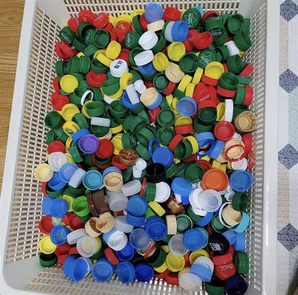 | ▲ 모아둔 패트병 뚜껑 |