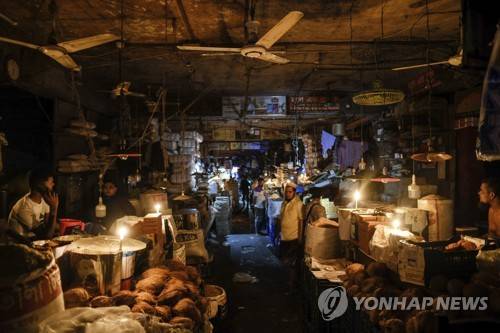 Vendors light candles at a market after a failure in Bangladesh's national power grid plunged much of the country into a blackout in Dhaka, Bangladesh, Tuesday, Oct.4, 2022. (AP Photo/Mahmud Hossain Opu)