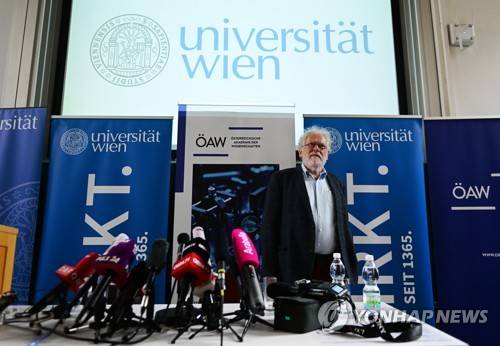 epa10222791 Anton Zeilinger gives a press conference at the Faculty of Physics in Vienna, Austria, 04 October 2022 after being awarded the 2022 Nobel Prize in Physics. The 2022 Nobel Prize in Physics was awarded to Zeilinger along with Alain Aspect from France and John F. Clauser of the US for their 'groundbreaking experiments using entangled quantum states, where two particles behave like a single unit even when they are separated. Their results have cleared the way for new technology based upon quantum information', the Royal Swedish Academy of Sciences in Stockholm announced on 04 October 2022. EPA/CHRISTIAN BRUNA