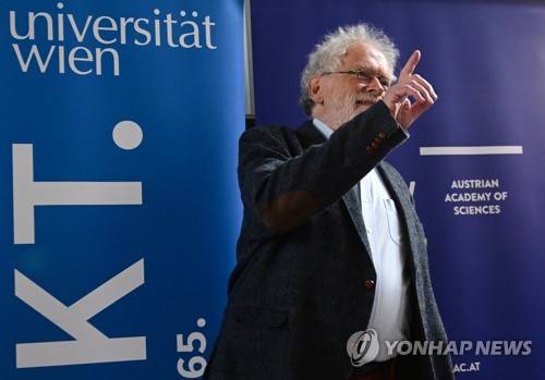 epa10222808 Anton Zeilinger gives a press conference at the Faculty of Physics in Vienna, Austria, 04 October 2022 after being awarded the 2022 Nobel Prize in Physics. The 2022 Nobel Prize in Physics was awarded to Zeilinger along with Alain Aspect from France and John F. Clauser of the US for their 'groundbreaking experiments using entangled quantum states, where two particles behave like a single unit even when they are separated. Their results have cleared the way for new technology based upon quantum information', the Royal Swedish Academy of Sciences in Stockholm announced on 04 October 2022. EPA/CHRISTIAN BRUNA