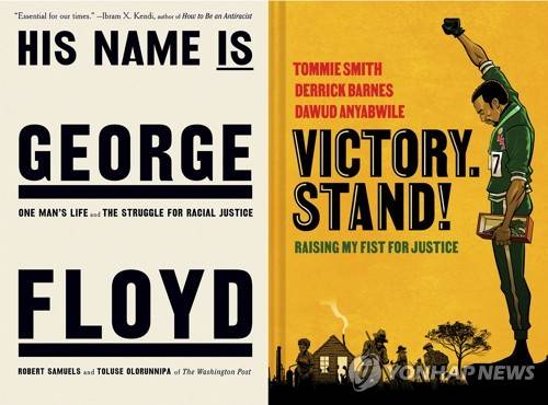 This combination of photos shows "His Name Is George Floyd: One Man's Life and the Struggle for Racial Justice" by Robert Samuels and Toluse Olorunnipa, left, and "Victory. Stand!: Raising My Fist for Justice," a collaboration among Tommie Smith, Derrick Barnes and Dawud Anyabwile. (Viking/Norton Young Readers via AP) AP PROVIDES ACCESS TO THIS THIRD PARTY PHOTO SOLELY TO ILLUSTRATE NEWS REPORTING OR COMMENTARY ON FACTS DEPICTED IN IMAGE; MUST BE USED WITHIN 14 DAYS FROM TRANSMISSION; NO ARCHIVING; NO LICENSING; MANDATORY CREDIT
