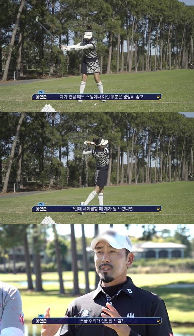 이인준 코치는 “송지아 선수는 스윙이나 이런 부분은 굉장히 좋고 그런데 셰이핑할 때 좀 주의가 산만한 느낌 집중력이 떨어지는 느낌이었다. 지연아는 기술이 부족하지만 집중력이 뛰어나다. 두 선수가 다른 면을 채워주면 좋을 것 같다”고 평했다. (사진=SBS 골프 ‘전지훈련’ 캡처)