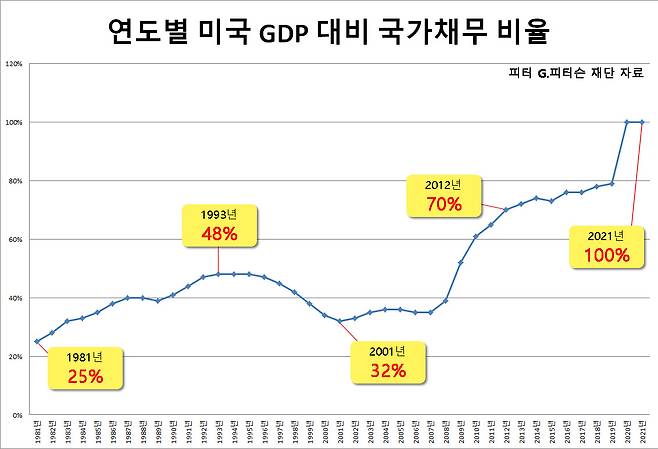 피터 G. 피터슨 재단은 금리가 계속 높아질 경우 미 연방정부가 향후 10년간 국가채무에 대한 이자 지급에만 1조달러(약 1420조원)를 추가로 지출해야 하는 상황이 벌어질 것이라고 전망했다.